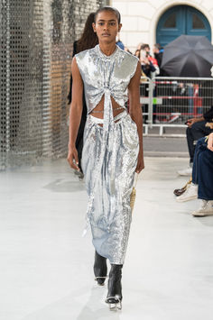 Midriff ‘flossing’ – as it resembles dental floss – was definitely the boldest trend to grace the runway this season. Seen on crop tops, skirts and dresses, Acne Studios, Jacquemus and Victoria Beckham are to thank for this new favourite.
